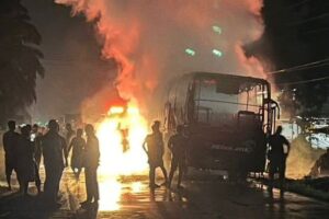 Diduga Korsleting, Bus Medan Jaya Terbakar di Muratara, Semua Penumpang Selamat